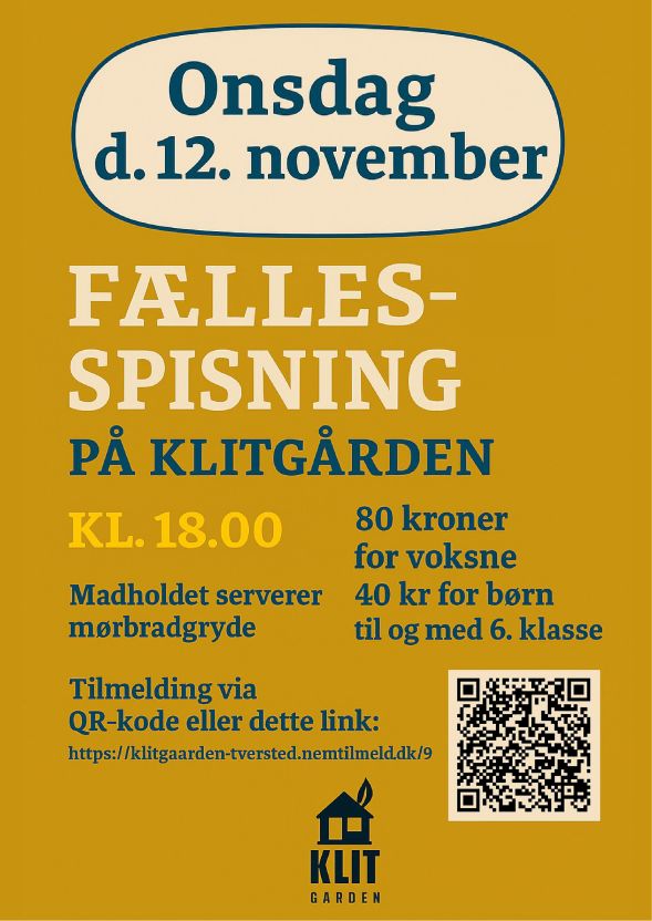 Prisen er 80 kr. pr. person, og børn til og med 6. klasse spiser med til halv pris.
